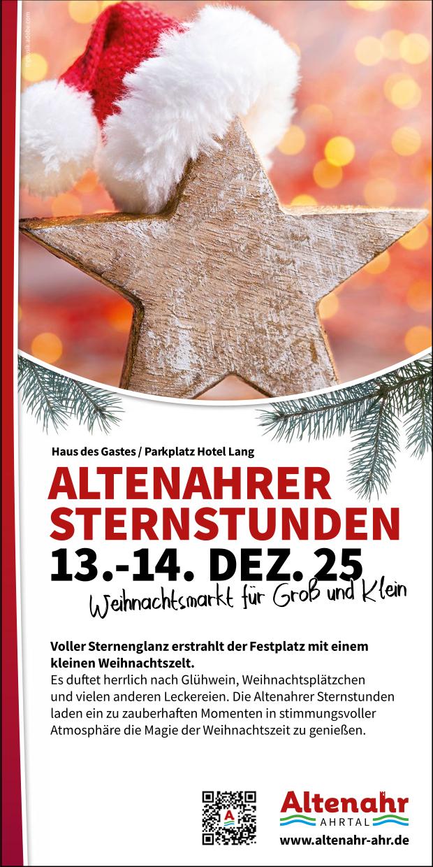 Die Altenahrer Sternstunden laden ein zu zauberhaften Momenten in stimmungsvoller Atmosphäre, die Hektik des Alltags hinter sich zu lassen und die Magie der Weihnachtszeit zu genießen.